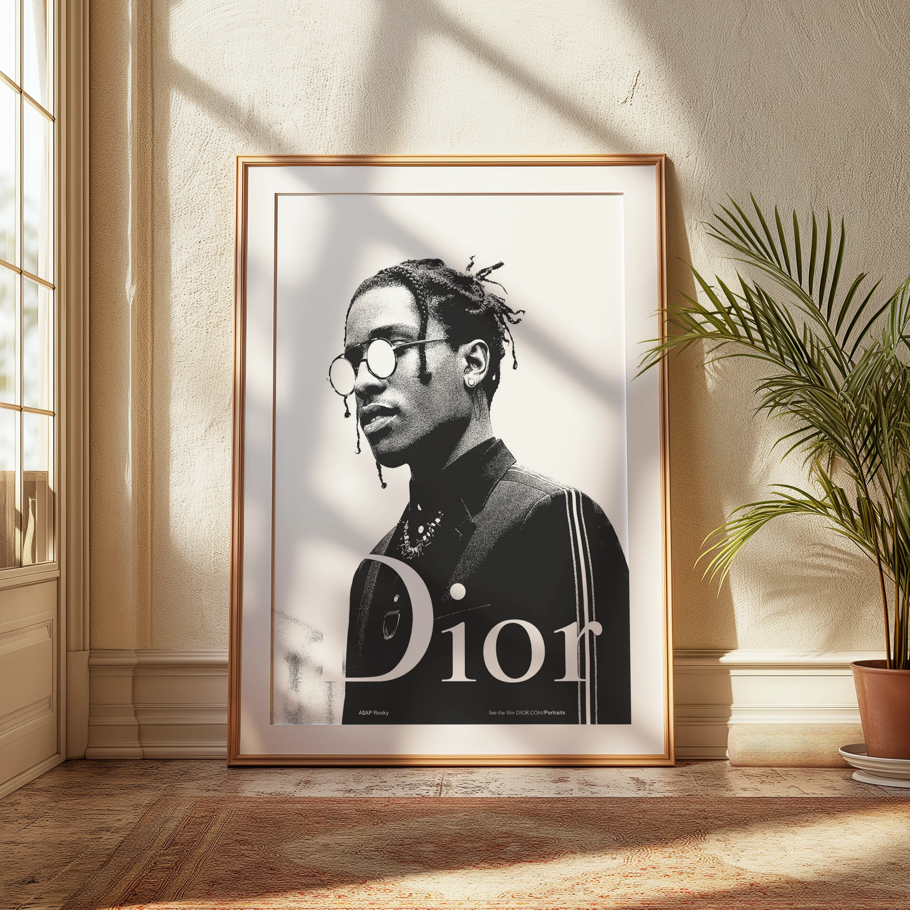 - Un symbole de culture et de modernité : A$AP Rocky est une figure majeure de la culture contemporaine. Ce tableau reflète son influence sur la mode et la musique, et l’associe à l’intemporalité de Dior.